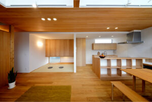 南面いっぱいに設けた大開口からやわらかな光が奥へと届き、