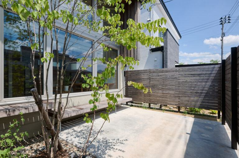 ウッドフェンスによって外からの視線をやわらかく遮り、