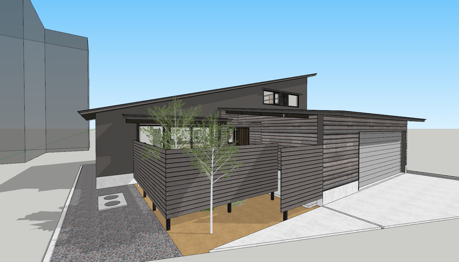 視線の抜けをかたちに。ロー&ワイドが際立つガレージハウス