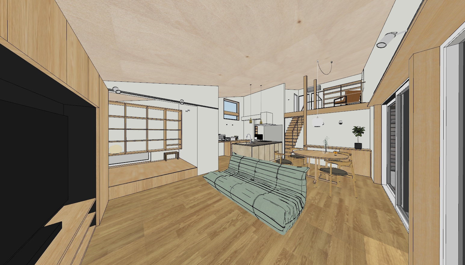 ほぼ1階で生活が完結する、半平屋の住まい。