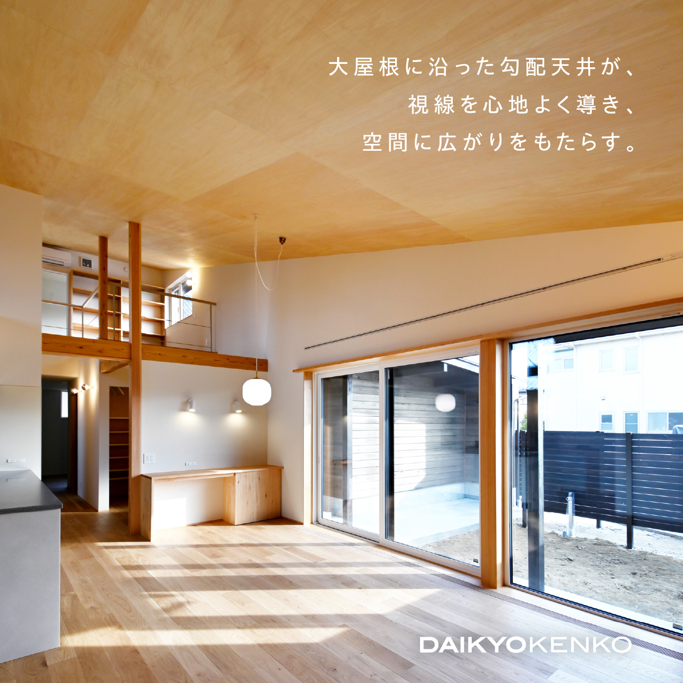 室内はその大屋根に沿った勾配天井によって視線が心地よく抜け、空間にゆるやかなつながりが生まれました。