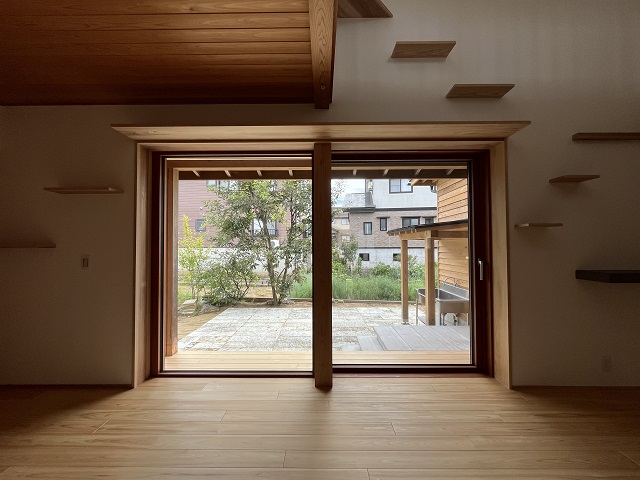 リビングとお庭の距離感を縮めるために様々な細工を施しました。