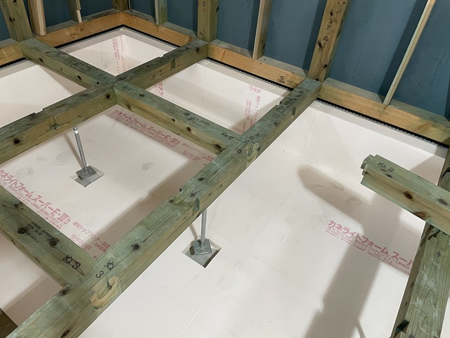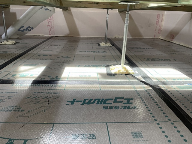 ~ 基礎断熱材(PSF3種b 50~100mm厚)施工 ~ 細部発泡ウレタン処理 ~