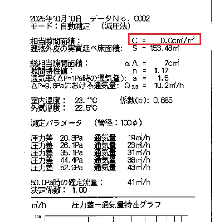 総相当隙間面積 7cm2 ÷ 実質延床面積 153.48㎡ = 0.04560....