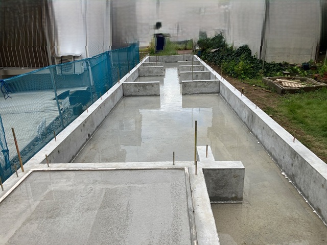 間口1.5間(2730mm) × 奥行8.5間(15470mm) の細長い基礎が完成しました。
