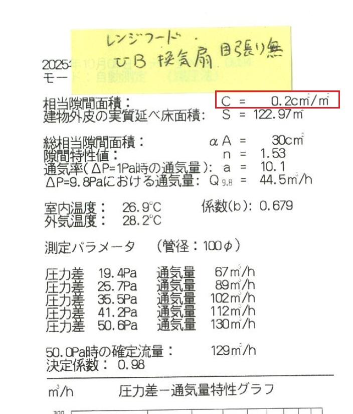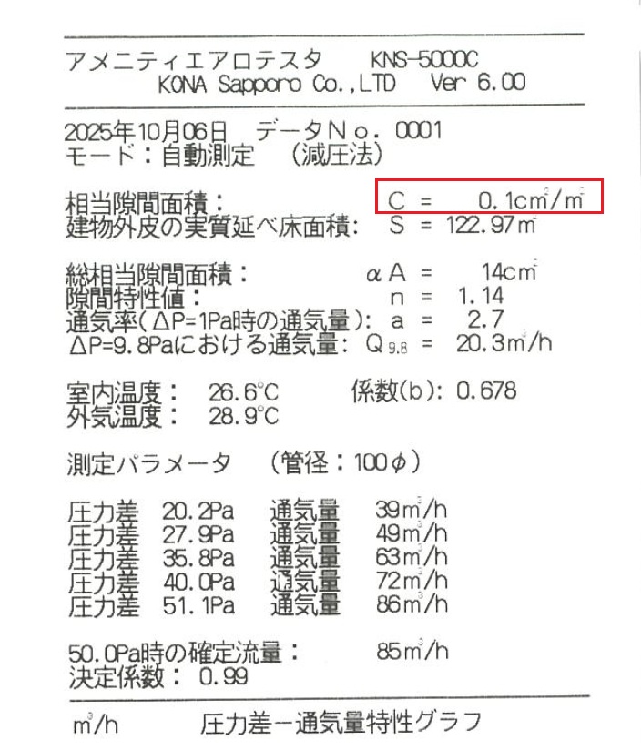 先日書いた記事のとおり、竣工時の気密測定を二パターンで実施してみました。