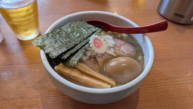 佐藤古田島は券売機左上理論に沿って王道メニューをオーダー。濃ゆい煮干スープ。