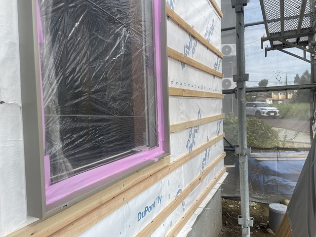 透湿防水シート施工 ~ 外壁下地木材施工