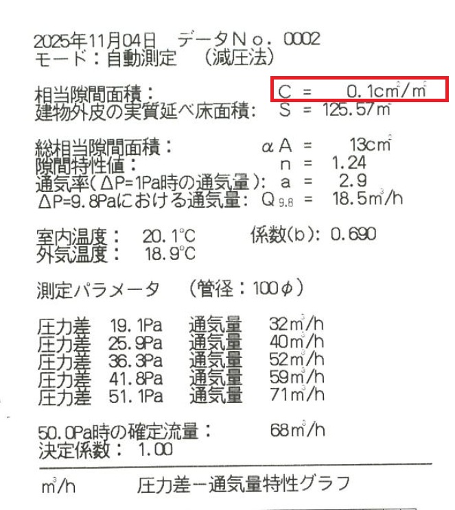 中間の気密測定結果。