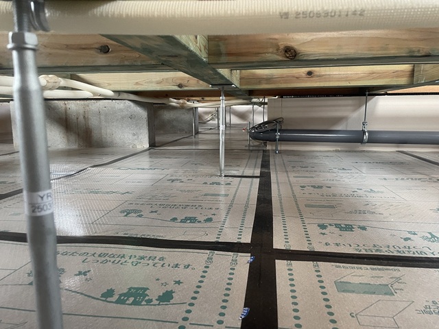 基礎スラブ上はポリスチレンフォームを全面に張り付けて、