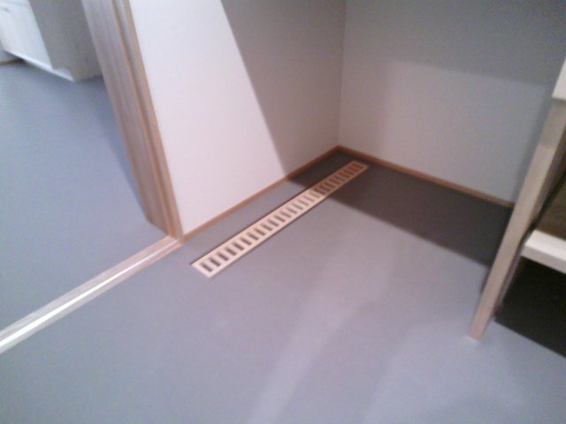 小上りの段差を利用して框下端(壁面)にも吹出口を設けております。