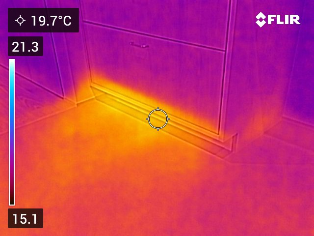 吹出口からの暖気 + 床面からの低温輻射 で室内を暖めていきます。