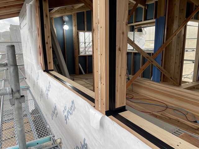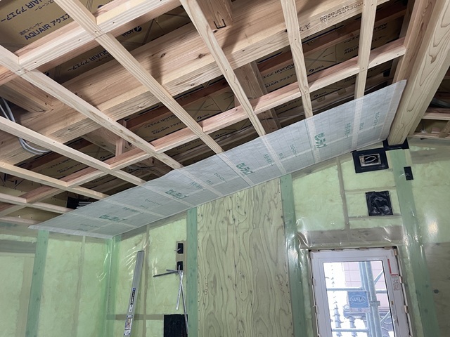 梁と梁の継手にも気密テープが貼ってあります。