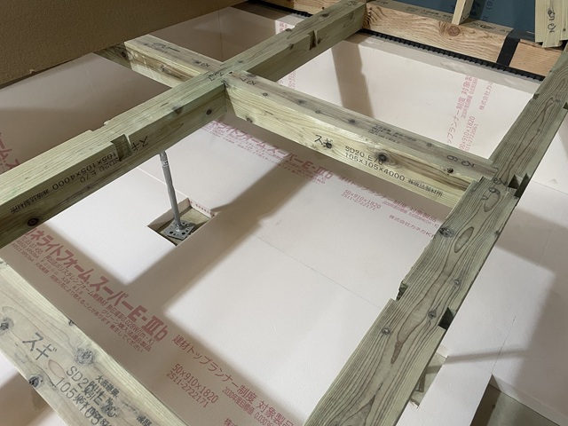 床束廻りの断熱材欠損部は発泡ウレタンで処理。