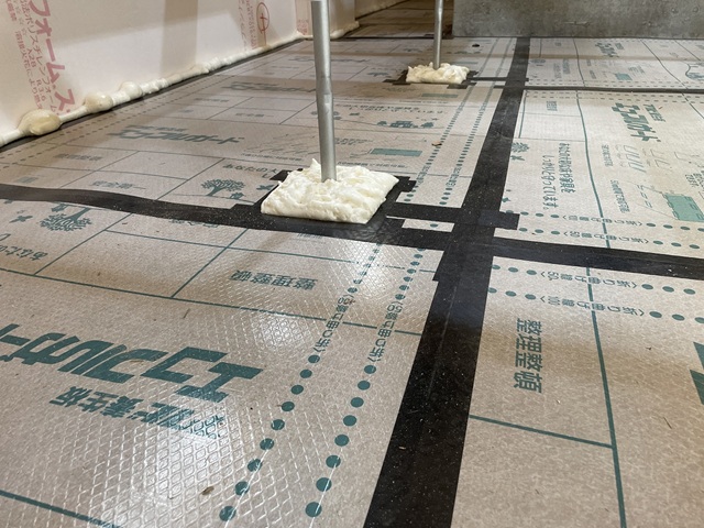 このうえにポリエチレンシートを張ります。そこが防湿層&気密層という考え方です。