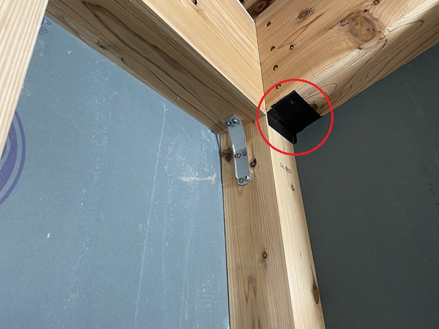 登梁と柱を繋ぐ接合金物のスリット(隙間)にも気密テープが。