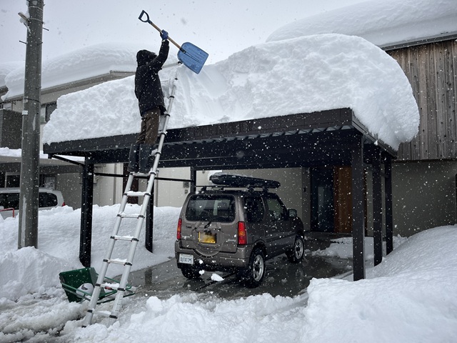 基本的にアルミカーポートは木造の母屋よりも華奢なので雪下ろしはお早めに。