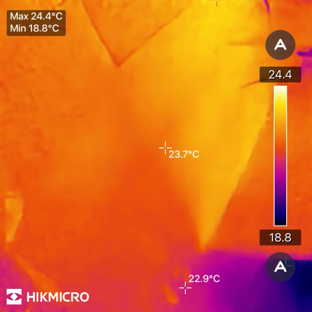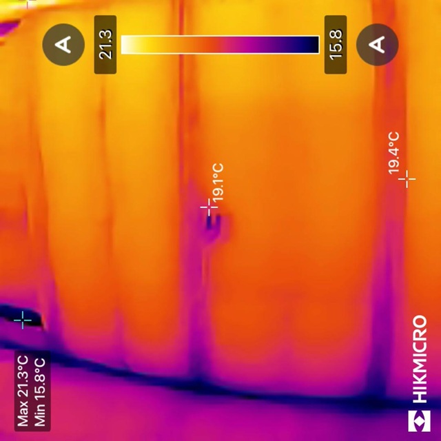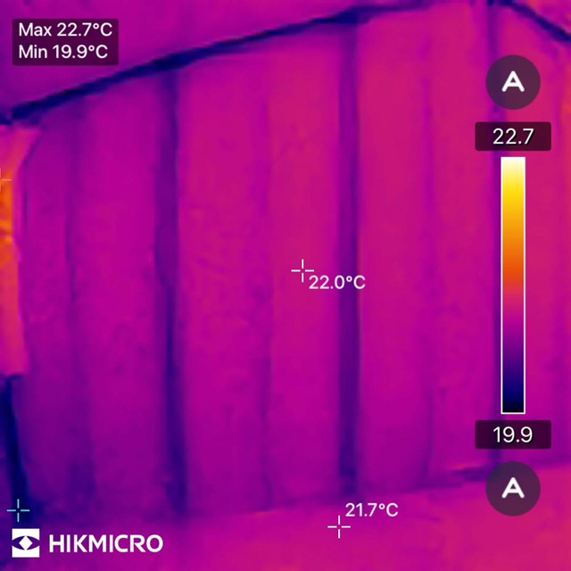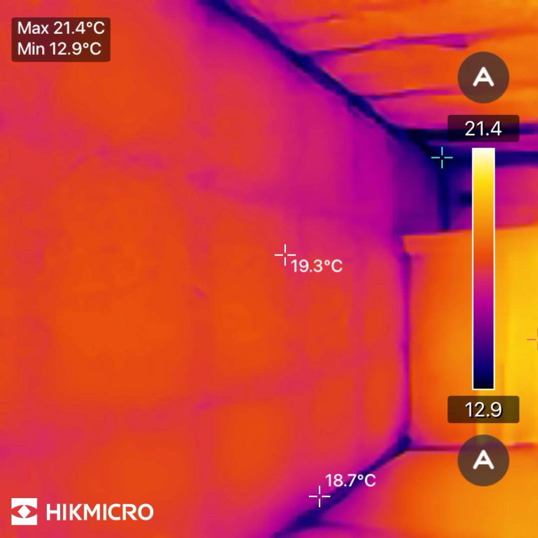 壁の表面温度は19℃~20℃と、上の写真と比べると2℃~3℃低いですね。
