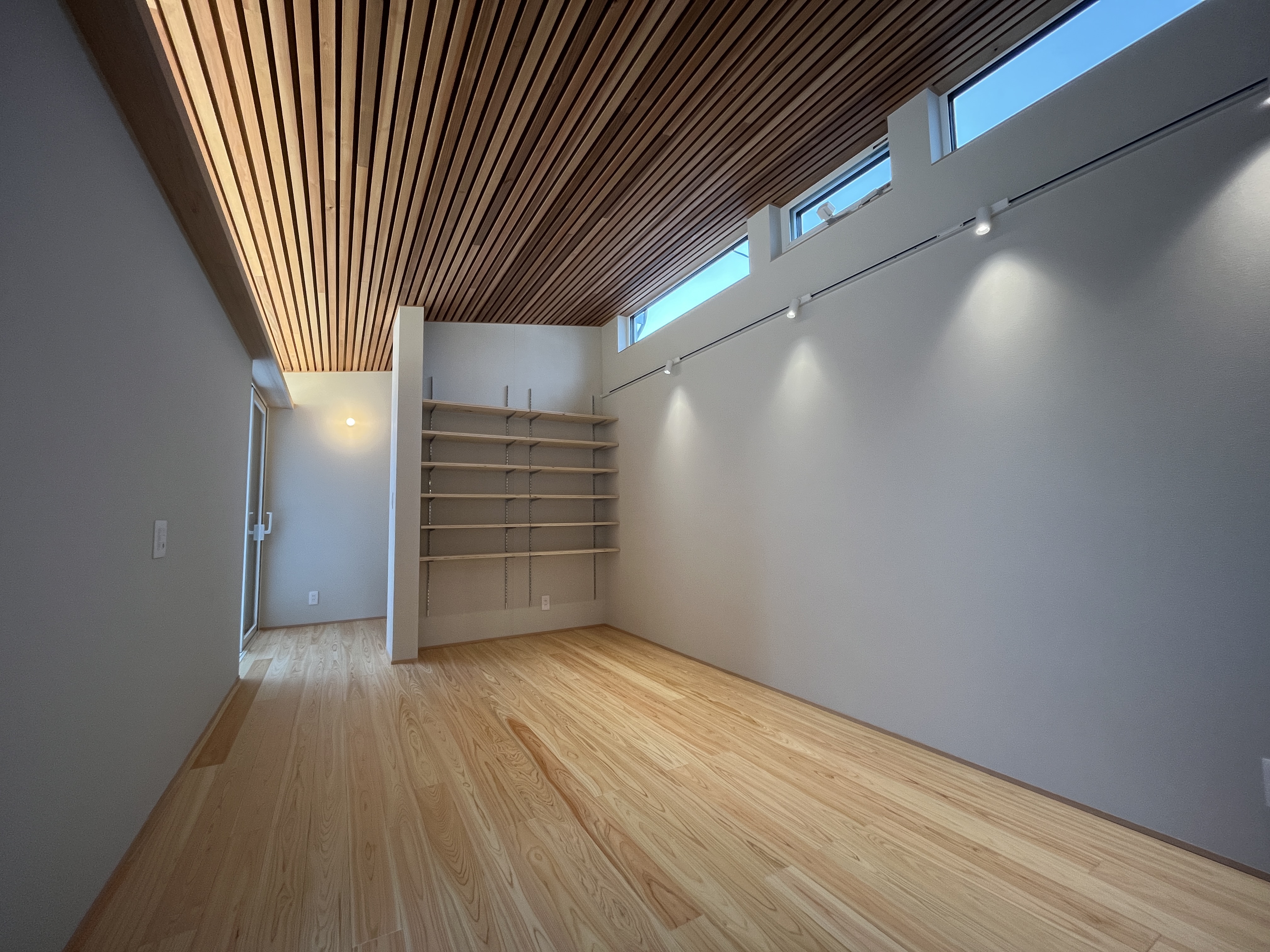 高窓を設けて視線が空に抜けるように。