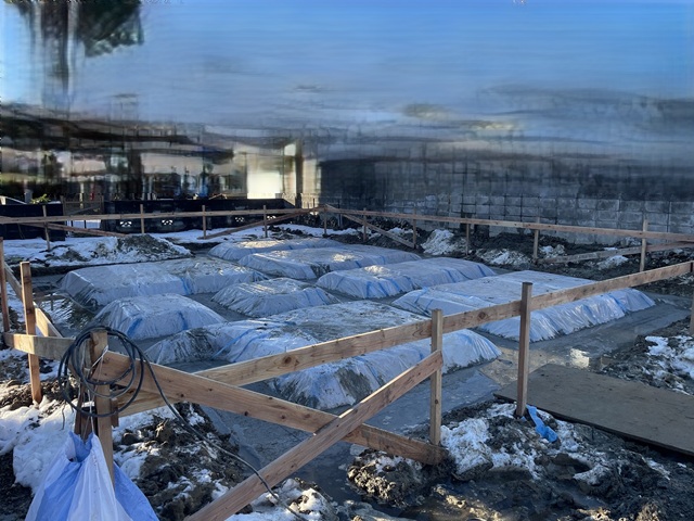 真冬の基礎コンクリート施工ということで、加温養生を行います。