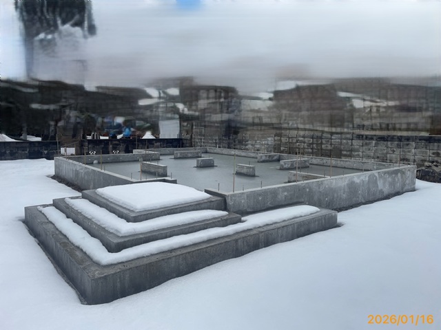 コンクリートが硬化してしまえば雪も低温も怖くありません。