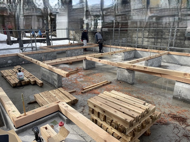 大掛かりな除雪作業(排雪作業)を行い基礎コンクリートをサルベージしたのち、