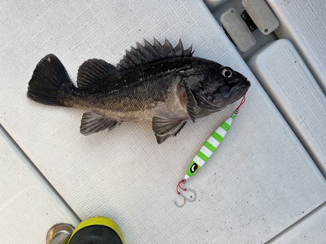 シマノ製のスロージグを落とすとクロソイが釣れました。