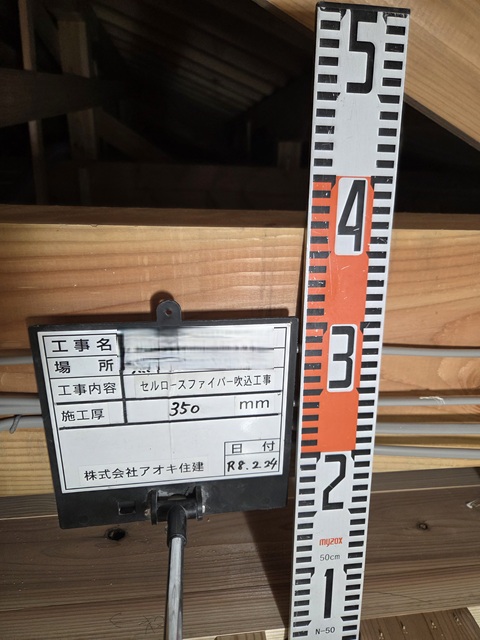 セルローズファイバー吹込。350mm厚。