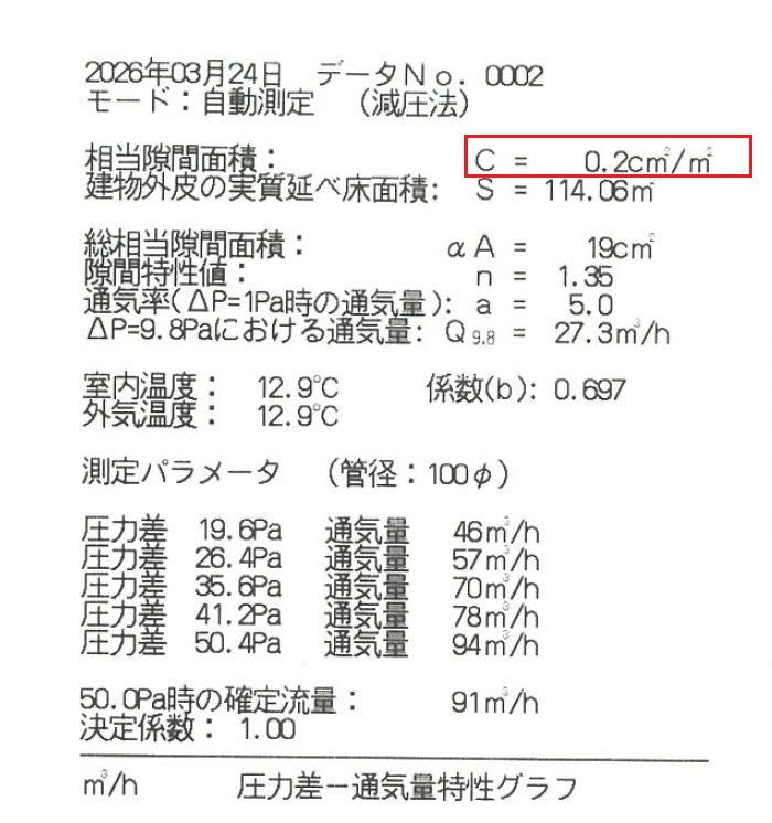 四捨五入ルールに沿って C値 = 0.2 cm2/㎡ ですね。