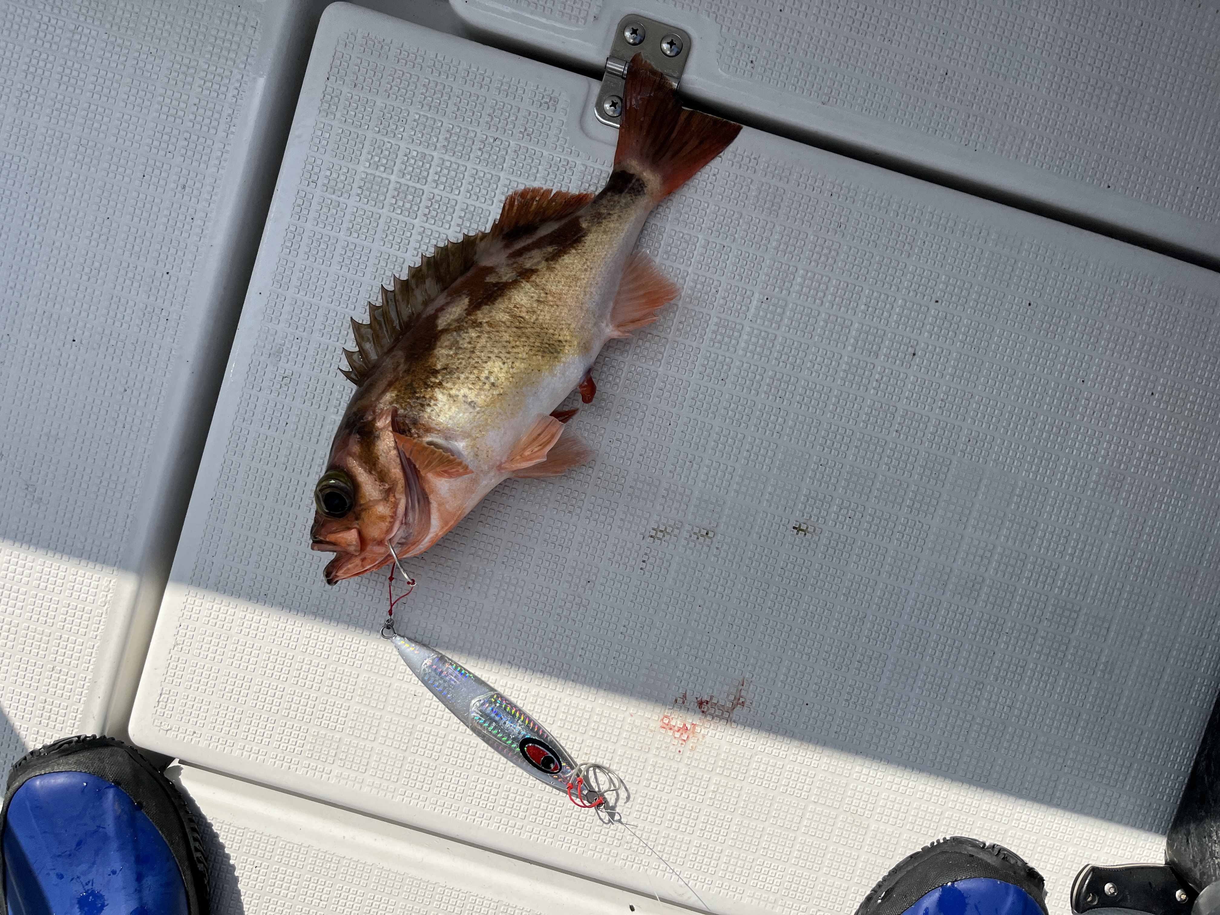 諦めずに必死に振っていたら沖メバルが一匹。
