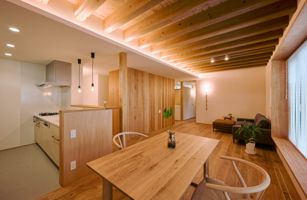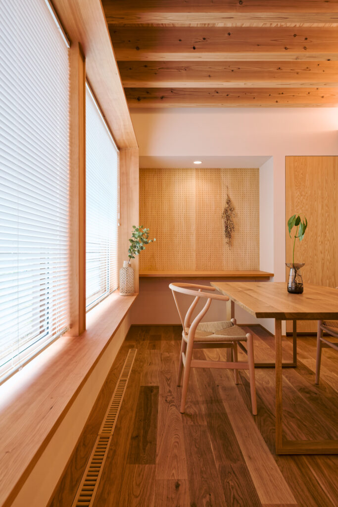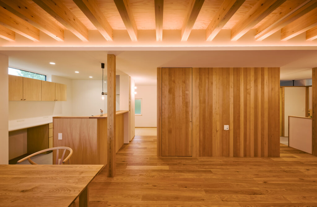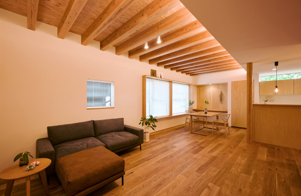 構造材をあらわした天井や杉板外壁など、経年変化を味わえる素材が、暮らしを豊かに彩ります。