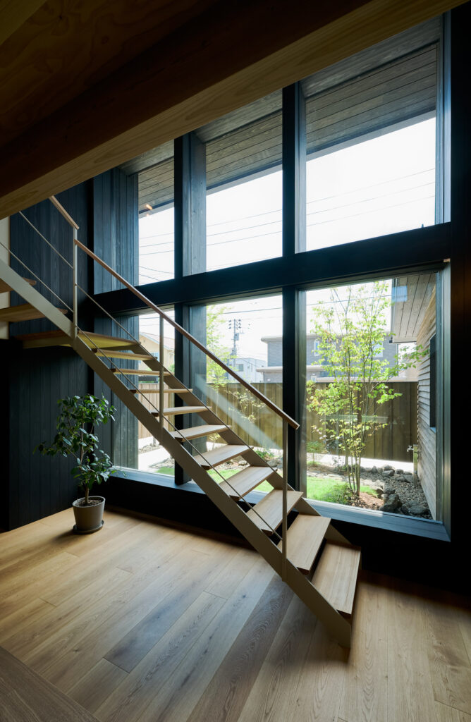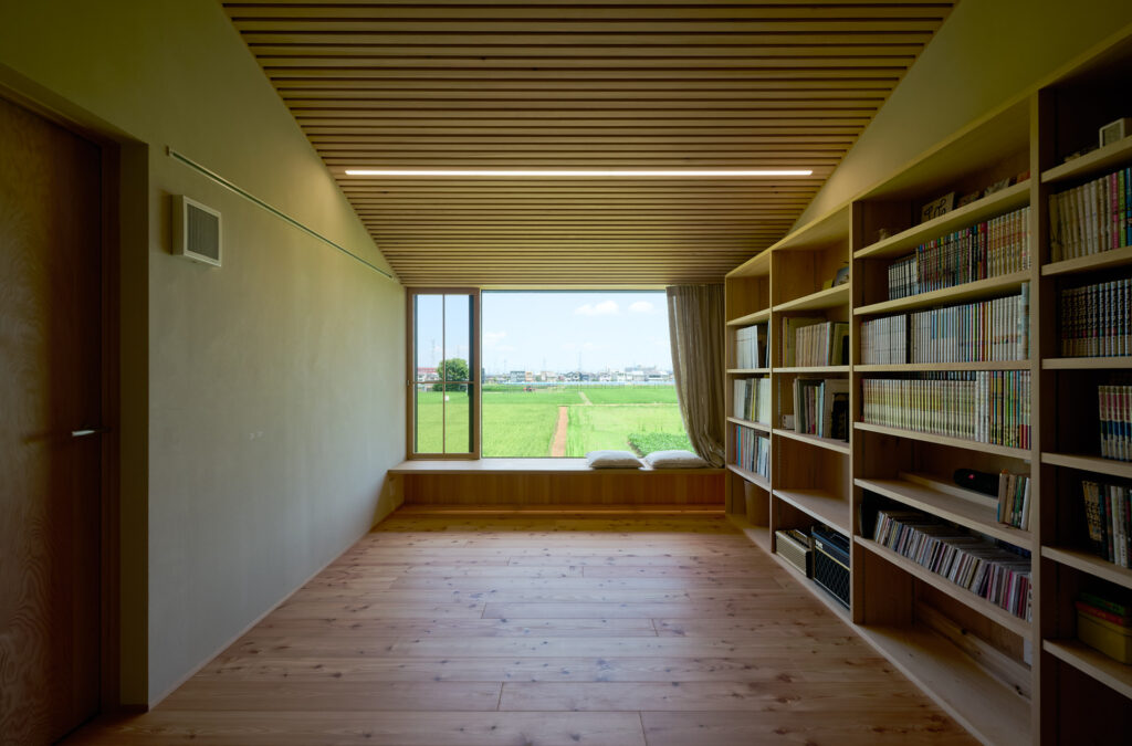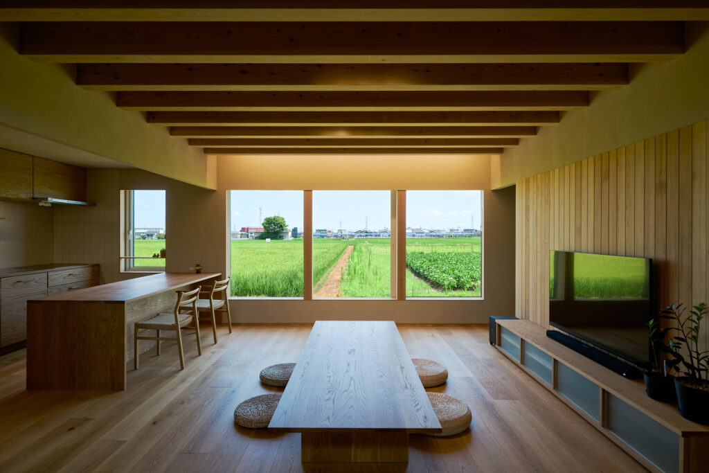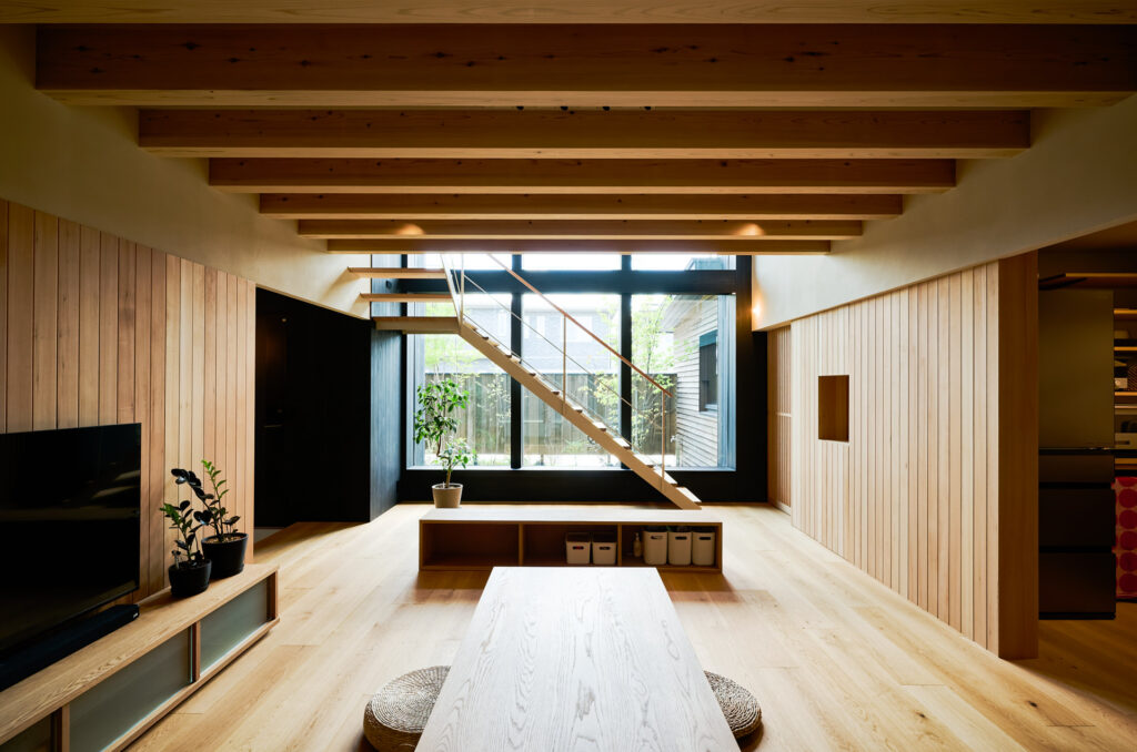 トンネルのように南北に開口を設けることで、北の景と南の光を住居がつなぎました。