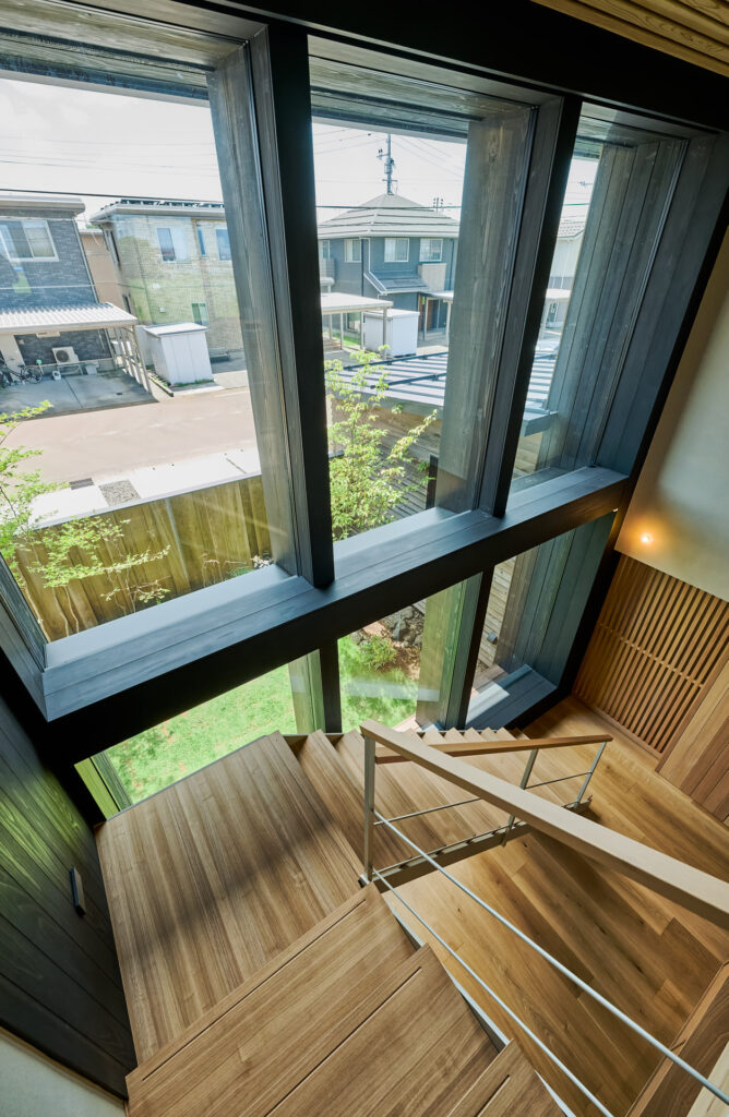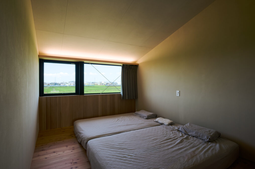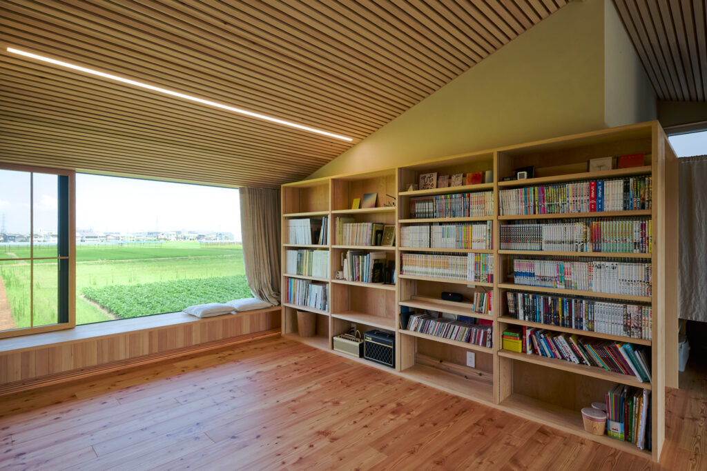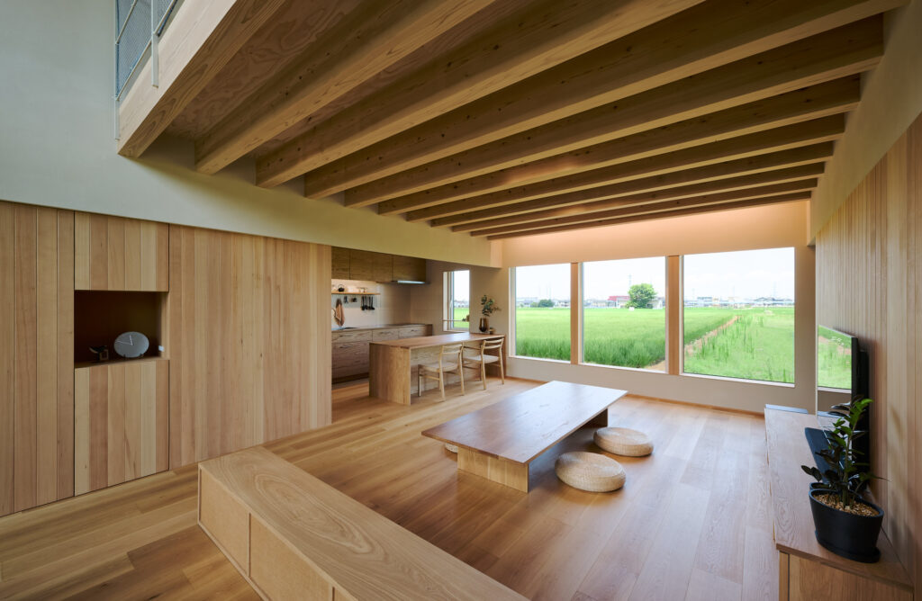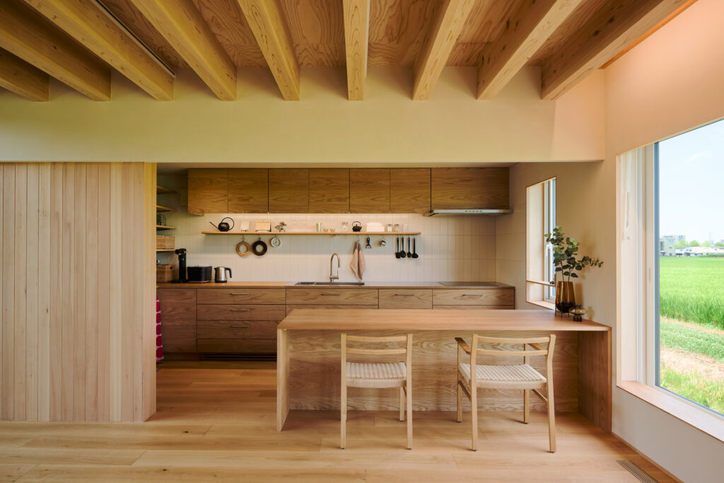 トンネルのように南北に開口を設けることで、北の景と南の光を住居がつなぎました。