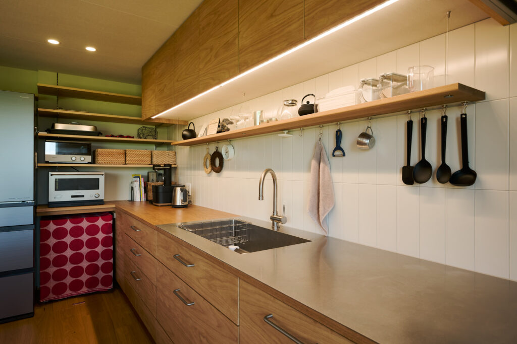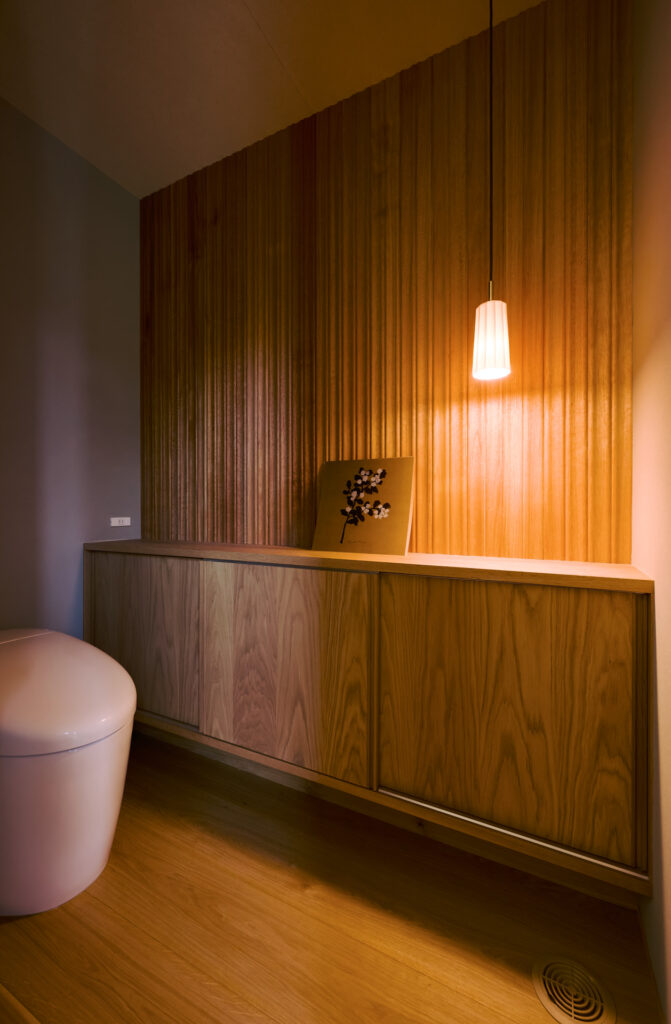 設計者の自邸らしい特徴のある色やしつらえが印象的です。