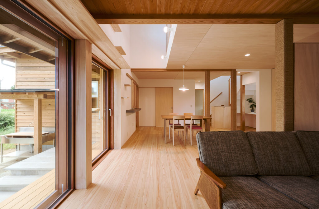 庭を愛でる住まい 小千谷市栄町 N様邸 築10年の木造住宅の大規模リフォーム工事です。 一部増築することでゆとりある伸びやかな内部空間へ生まれ変わりました。 既存窓にはインナーサッシを追加し高断熱化。 見どころとなるLDKの窓は高性能木製サッシを設置し、大きな窓から縁側と石畳の庭を望みます。 1/ 家族構成:ご夫婦+子ども2人 #ウッドデッキ、テラス #吹き抜け #多雪地域 #小千谷市 #木製サッシ 小幡 大樹 専務取締役・一級建築士