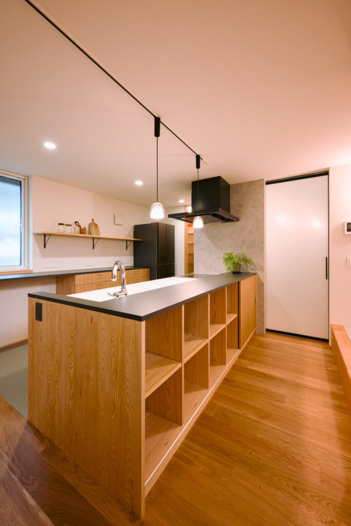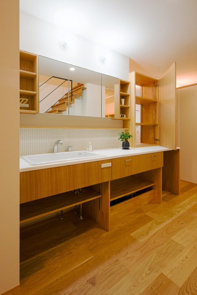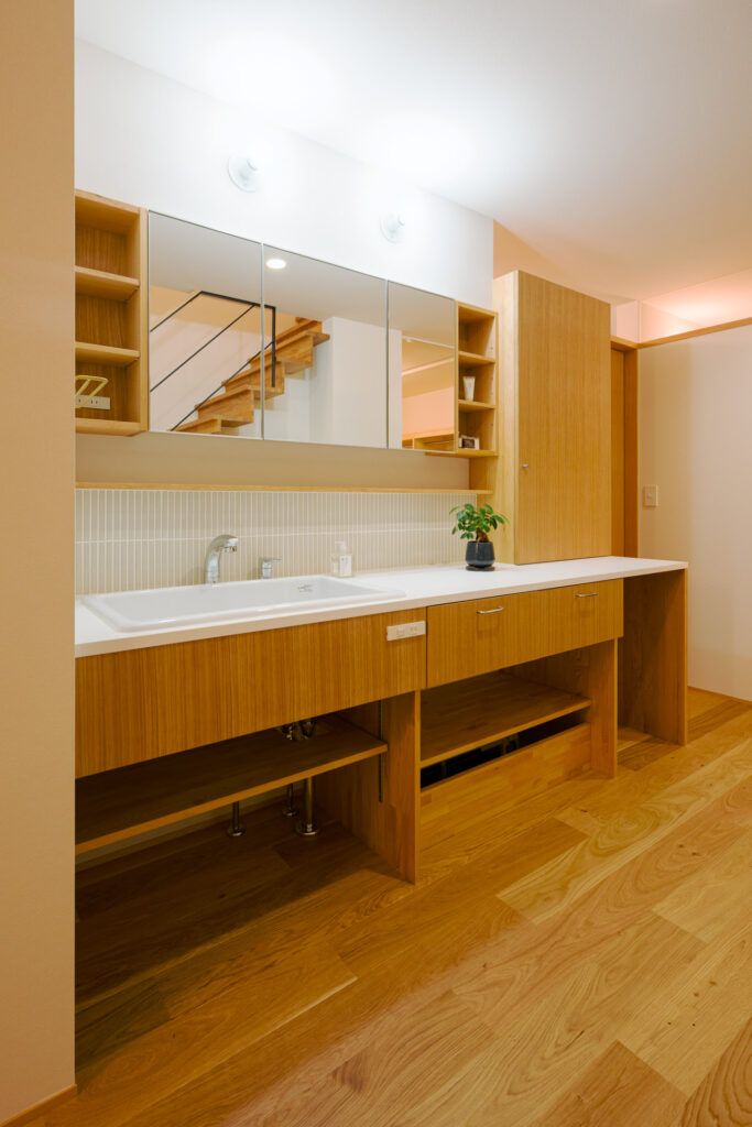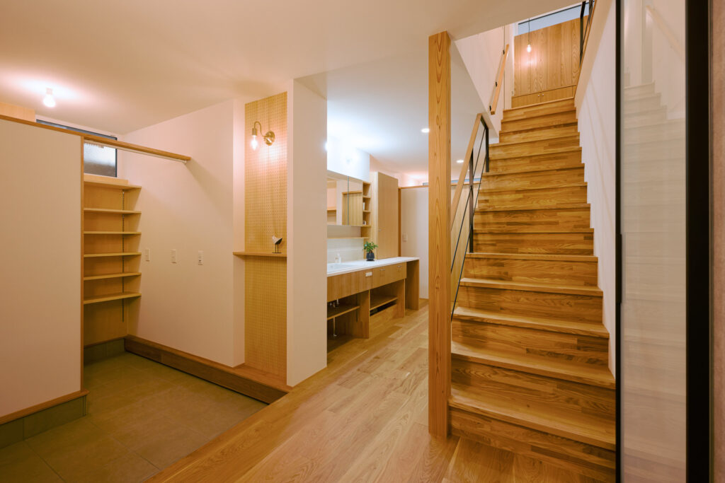 ぐるりとまわれる回遊動線を1階、2階ともに採用し、家事も暮らしも流れるように心地よく。