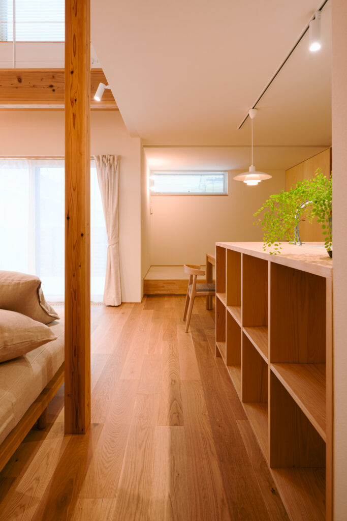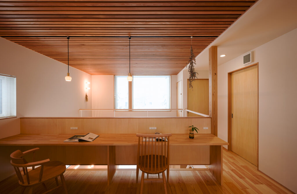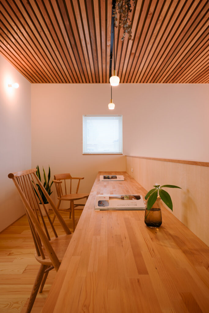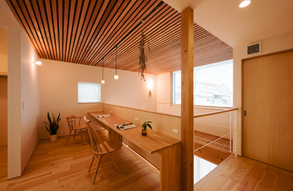 吹抜け越しのカウンターは、コーヒーを飲みながら本を開きたくなる、静かな居場所です。