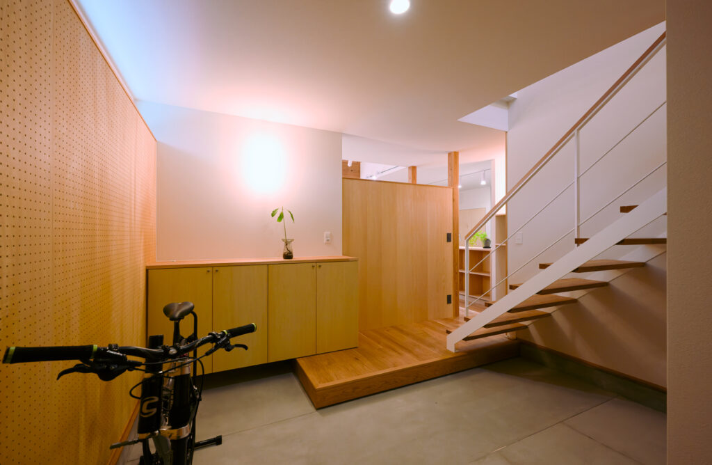 回遊動線や広い玄関土間など、日常の使いやすさにも配慮しました。